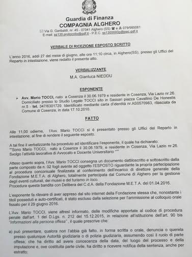 Ma ritornando alla cronaca, il professore Mario Tocci, che ha partecipato al concorso, vedendo quanto accaduto nei giorni a seguire il suo tentativo di partecipazione (infatti, pur insegnando in sette università come docente dei beni culturali e ambientali con specializzazione nel ramo sportivo, non ha superato il primo scoglio ovvero quello relativo ai titoli non arrivando nemmeno neanche alla prova orale), ha deciso di fare un gesto concreto e non fermarsi unicamente alla denuncia attraverso i media, ma recandosi ieri mattina nella caserma di via Garibaldi ha raccontato i fatti alle Fiamme Gialle.