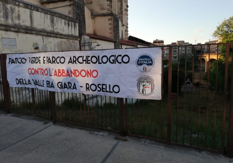 SASSARI – “Parco verde e parco archeologico contro l’abbandono della valle Eba Giara-Rosello”, questo il testo degli striscioni appesi nel tardo pomeriggio di mercoledì 10 giugno, dai militanti di Fratelli d’Italia Sassari circolo Audax e dello Spazio Identitario Domus Turritana”. Cosi il Direttivo Fratelli d’Italia Sassari Audax  e anche Direttivo Domus Turritana riguardo alcuni interventi su verde e decoro da attuare a Sassari.