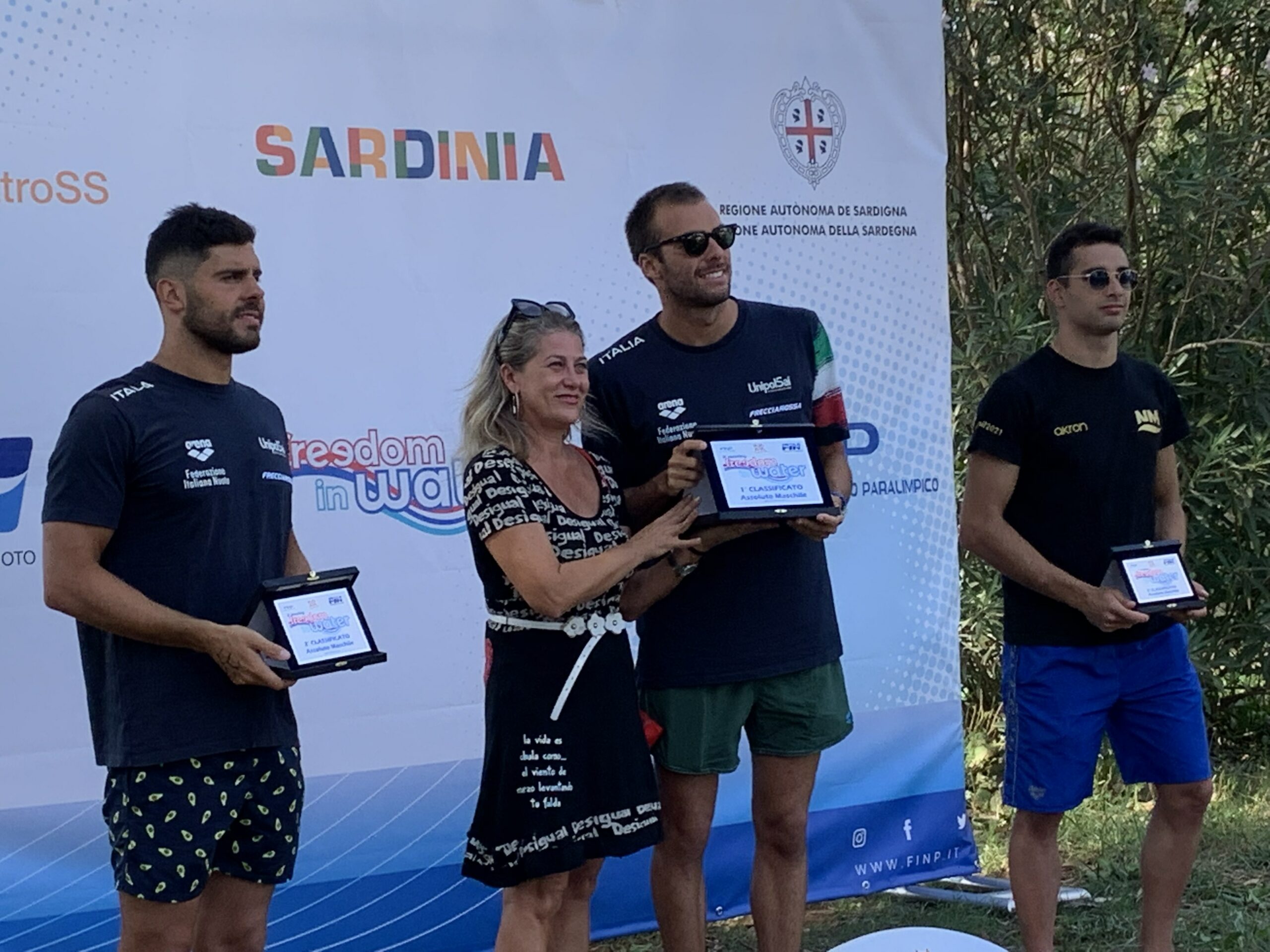 ALGHERO – Ieri grande nuoto ad Alghero. La spiaggia ha ospitato l’8^ edizione del campionato italiano di nuoto paralimpico in acque libere e 8^ Freedom in Water. Manifestazioni che, grazie anche al clima estivo e al supporto organizzativo della Griglieria Meloni, hanno ottenuto un ottimo risultato con l’Amministrazione che, alla presenza del Sindaco Conoci, è stata premiata nelle persone degli assessori allo Sport Maria Grazia Salaris e all’Ambiente Andrea Montis. Riconoscimento anche al Presidente della Fondazione Alghero Andrea Delogu, organismo che è sempre più il motore degli eventi della Riviera del Corallo, e alla dott.ssa Lina Bardino, componente del Cda del Parco di Porto Conte, da sempre vicino alle manifestazioni che coniugano sostenibilità, sport e attrazione turistica. Intanto inizia l’attesa per la tappa del campionato che si terrà il 9 ottobre sempre nel golfo di Porto Conte con la rinnovata presenza dei più grandi nuotatori in circolazione, tra cui Paltrinieri.